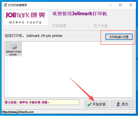 3、根据打印机连接情况设置端口,然后点击开始安装。